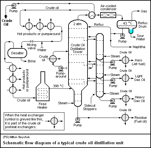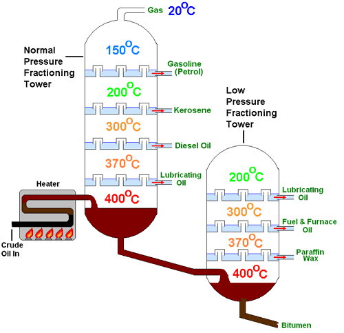 蒸馏是一个分离过程,包括加热原油以分离其组分,在这个过程中,油流被泵入蒸馏塔的底部,在那里被加热,混合物中较轻的碳氢化合物组分上升到柱的顶部,大部分高沸点组分留在底部